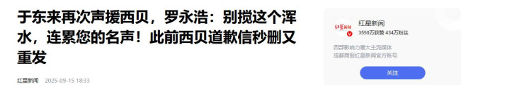 红星新闻|于东来再次声援西贝