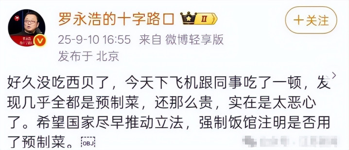 今年 9 月,罗永浩公开质疑西贝“又贵又难吃”。