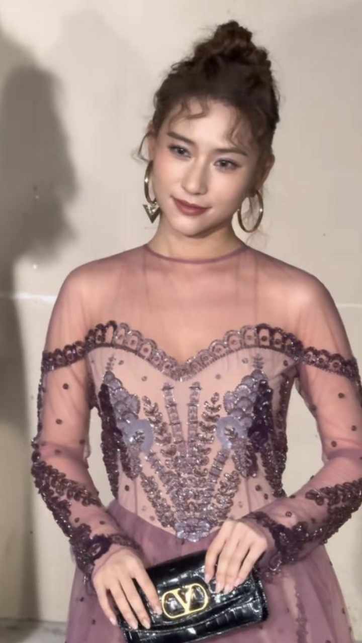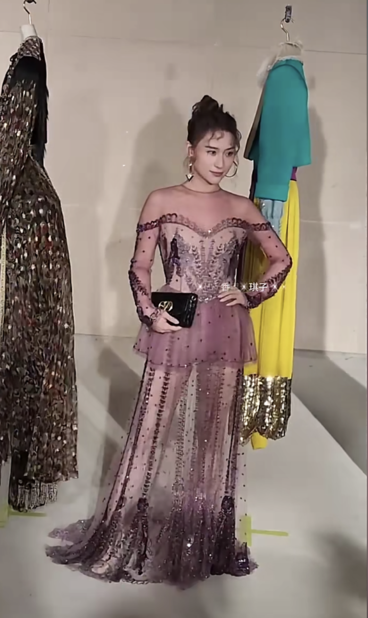 这次的新品发布会上,她穿着一袭紫色的长裙,没有滤镜的生图下,这件裙子并不显高级,被网友吐槽影楼风。