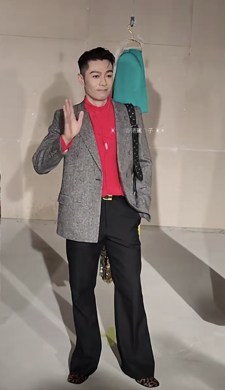 可能大牌设计师的审美一般普通人get不到吧,这鲜红的衬衫,尖头的豹纹鞋,实在不潮流,把他本来挺阳刚的气质给降了两档。