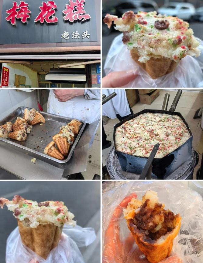 阗福斋的咸蛋黄肉松团,香软不腻;老法头家的梅花糕,豆沙流心趁热最好;