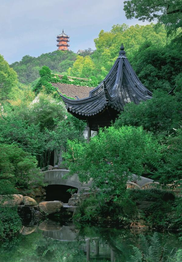 八音涧的水声,在石上叮咚,如若隐若现的古琴;嘉树堂与涵碧亭间,有草木扶疏、塔影水中,借着龙光塔的轮廓勾出山池塔影。