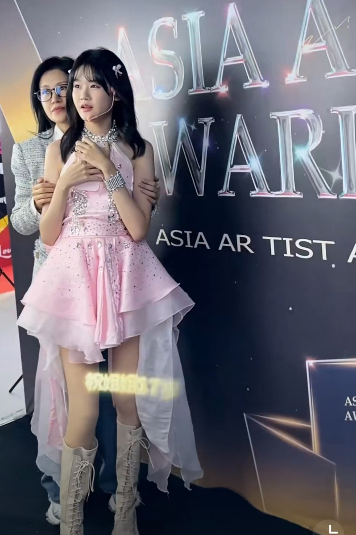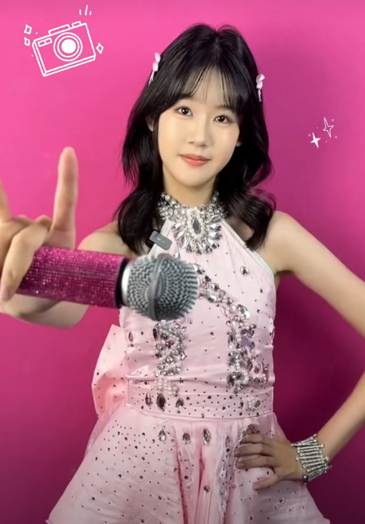 贝儿最后选择了一套粉色的女团装,穿上这身衣服后,贝儿真就像从韩国归来的女团成员,甜美可爱。