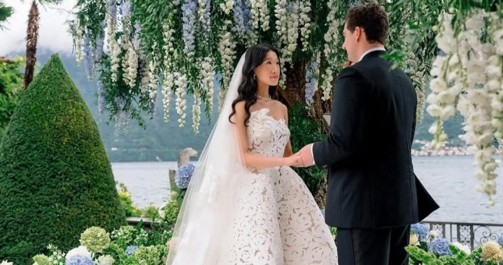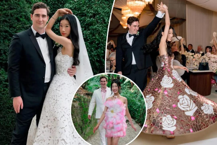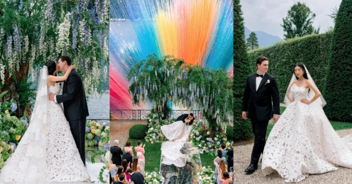 婚礼当天,知名杂志《Vogue》派专业团队进行全程跟踪式报道,吸引全球百万人观看。新娘贝卡在典礼上穿着一身高定婚纱,佩戴全套高定珠宝登场,之后又换了多套价值不菲的高定礼服。