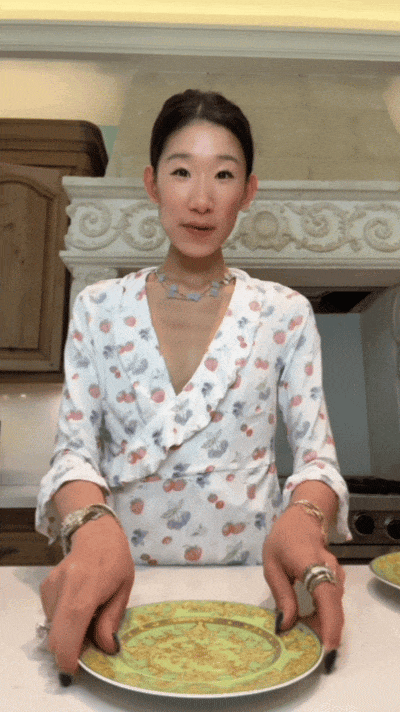而真正让她大火的一条视频,是她给挑食的宠物猫做饭,用的都是鱼子酱、三文鱼等名贵食材和奢侈品餐具。