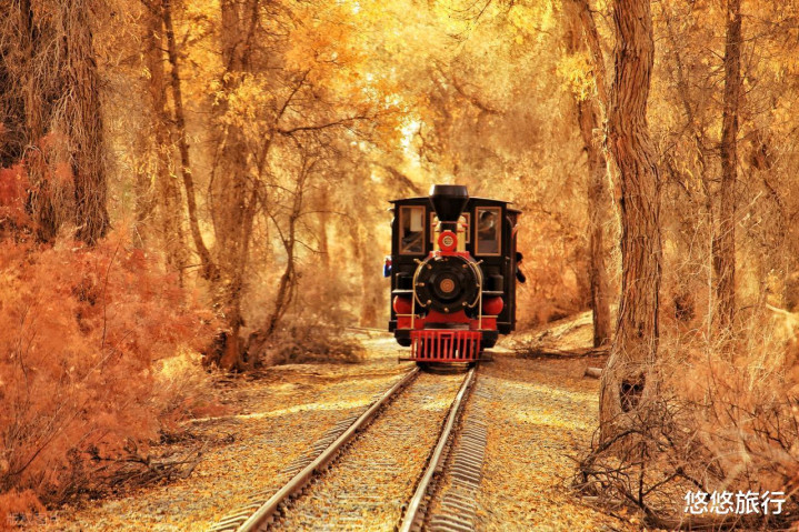 塔克拉玛干沙漠的苍茫、胡杨的金黄绚烂,每一步都是惊喜与浪漫。进入塔里木胡杨林公园,湿地胡杨、沙漠胡杨、水中胡杨一次看个够。乘坐复古小火车穿梭金色隧道,随手拍都是秋日美照。