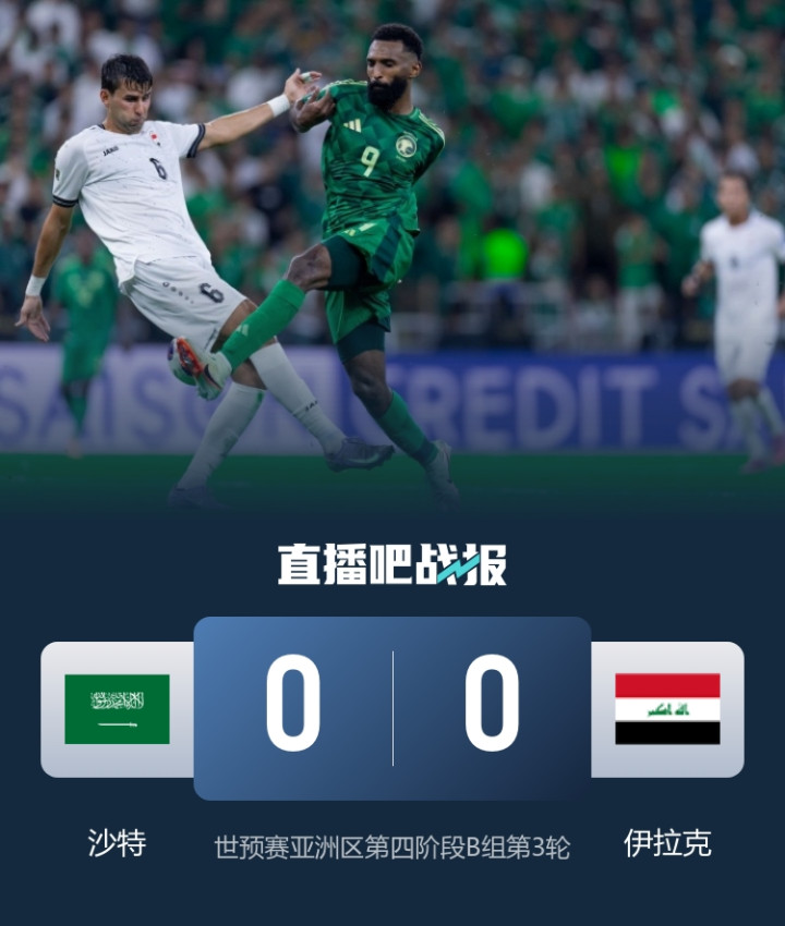 直播吧10月16日讯伊拉克世预赛战平沙特,无缘直通世界杯,还需要在11月与阿联酋进行第五阶段比赛。赛后沙特媒体《中东报》撰文表示,伊拉克表现引起国内不满,赛后发布会上有记者也表达了失望之情。