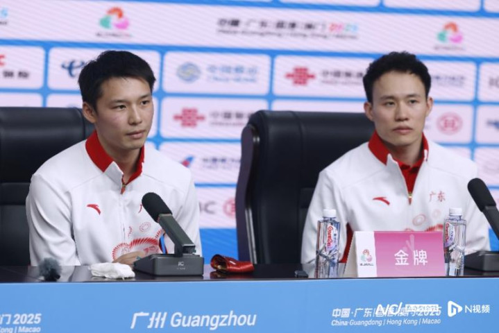 陈艾森(左)与谢思埸在赛后新闻发布会上。